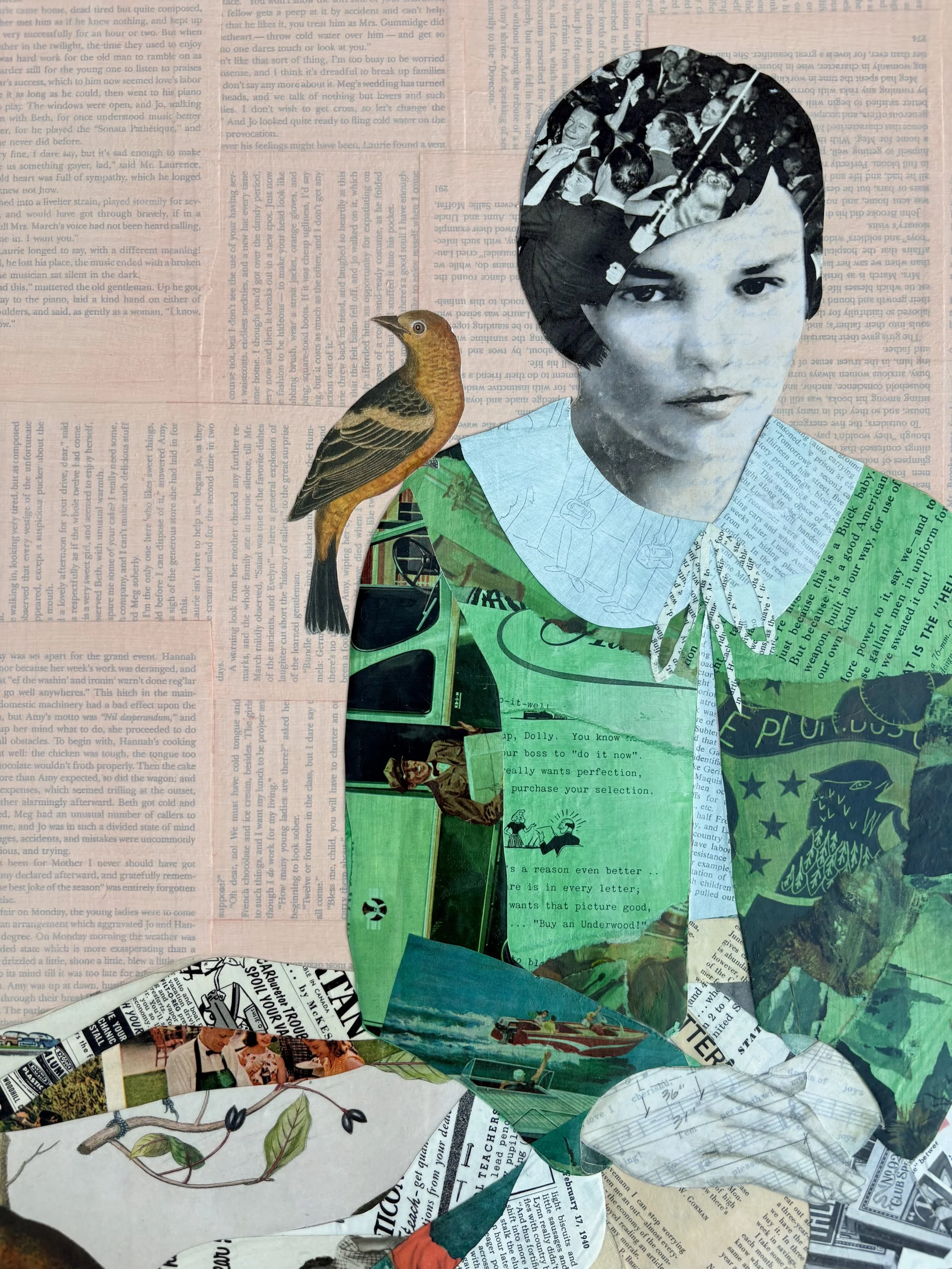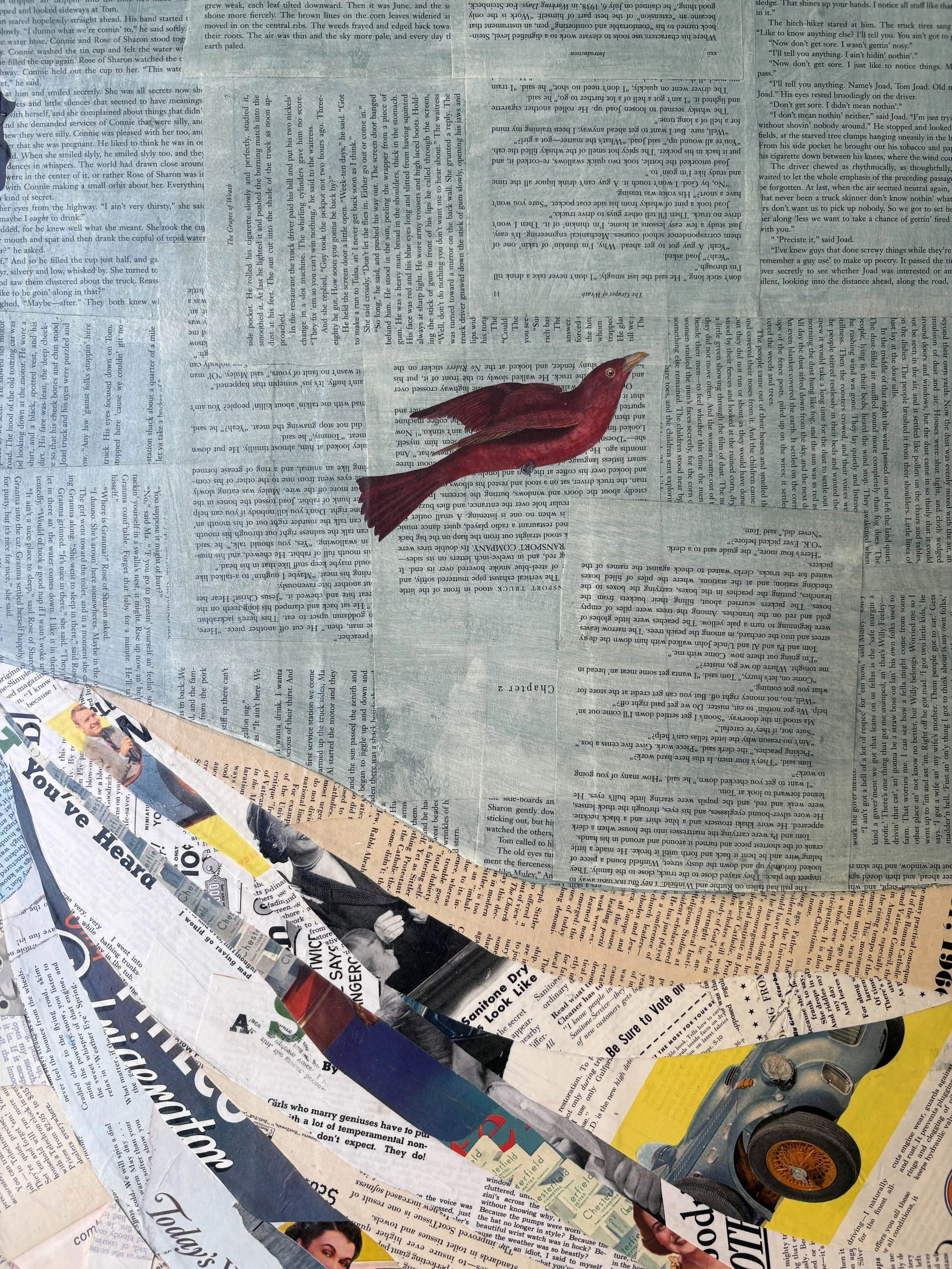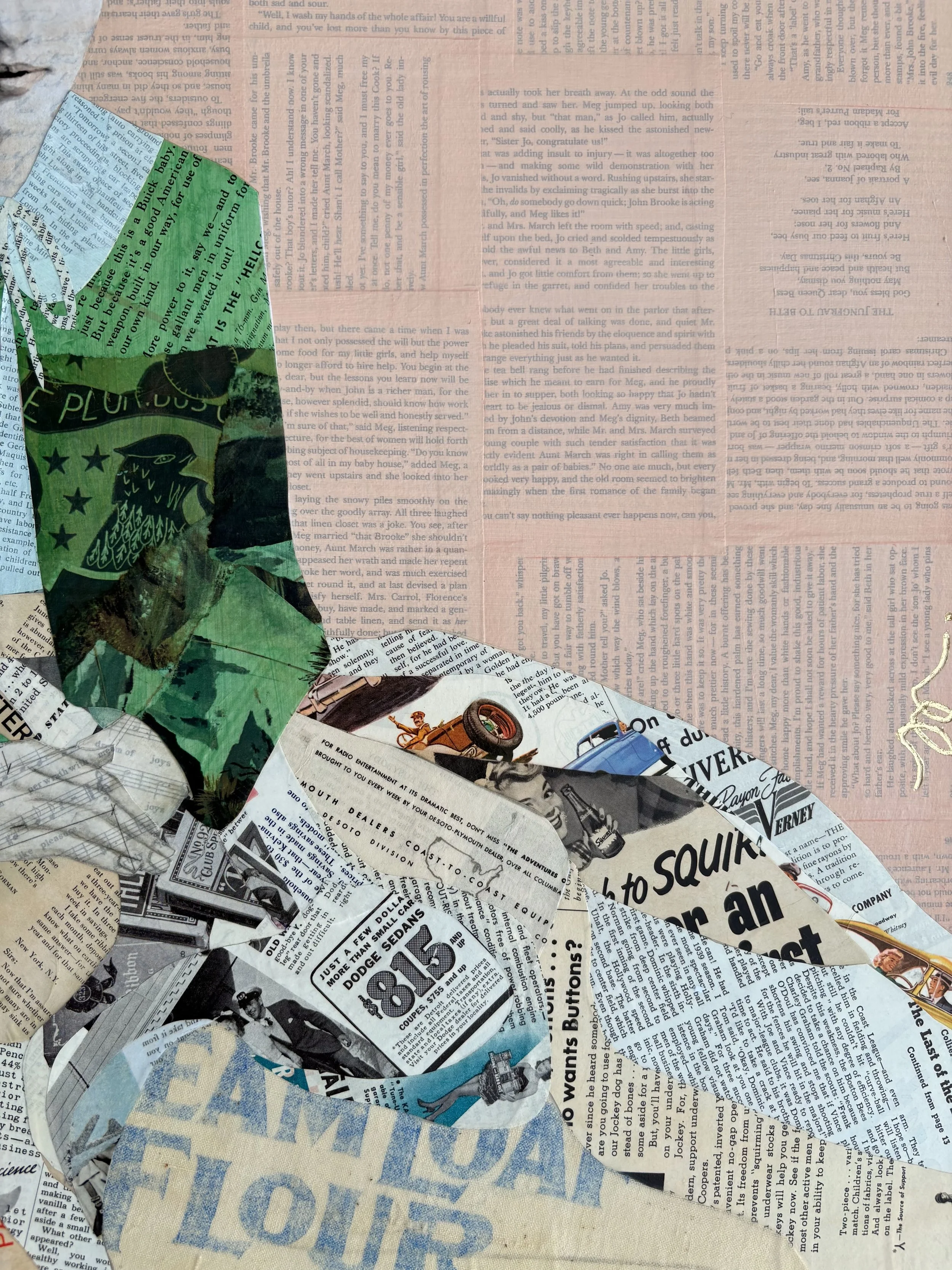 Mixed Media pieces created from vintage and modern magazines, old books, and repurposed materials.